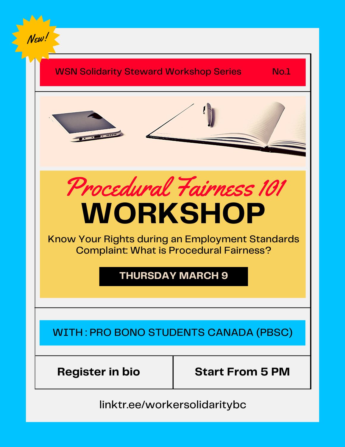 Too many workers already experience wage theft, unjust termination, and other violations of the Employment Standards Act. Typically, information about your rights at work, such as minimum wage requirements and overtime, are accessible online such as on the Employment Standards website, or the WSN Know-Your-Rights page.