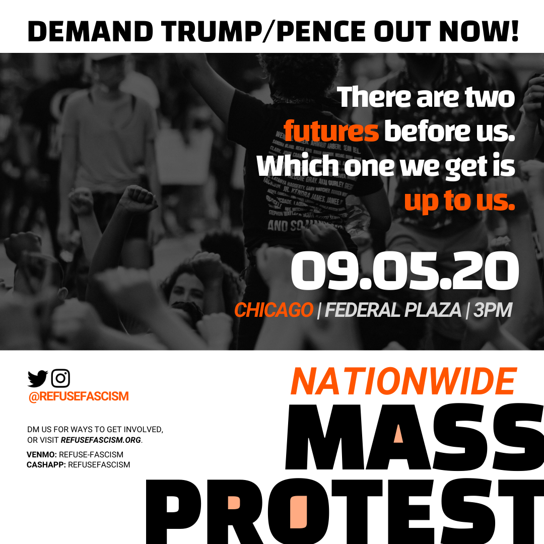 Saturday, September 5th – Spread this call to bring many thousands into the streets for mass protests across the country demanding Trump Pence Out Now!