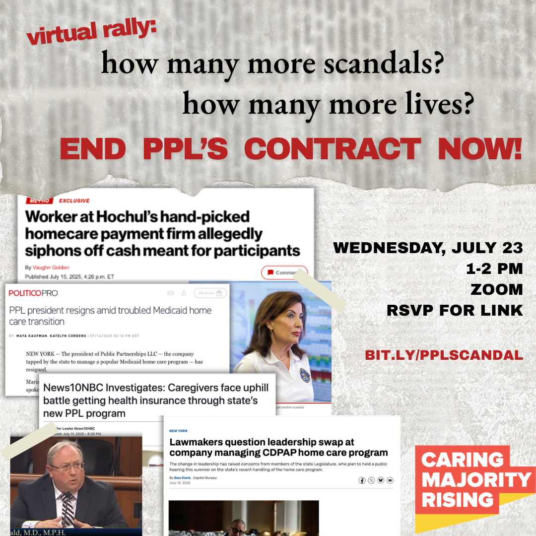 On Wednesday, July 23 from 1-2 PM on Zoom, we will be taking virtual action together to end the PPL contract NOW and restore the trusted providers that have kept CDPAP going for years.