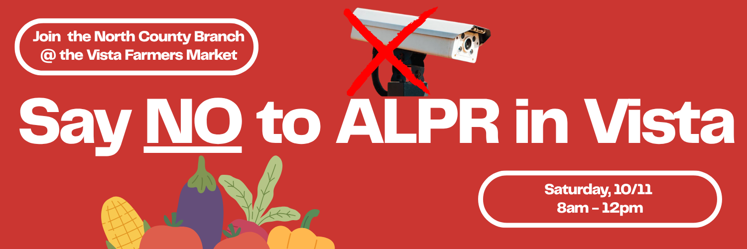 We will be distributing informational flyers about the dangers of ALPR, and provide residents with the opportunity to fill-out comment cards that we will deliver to the Vista City Council at the October 28th meeting.