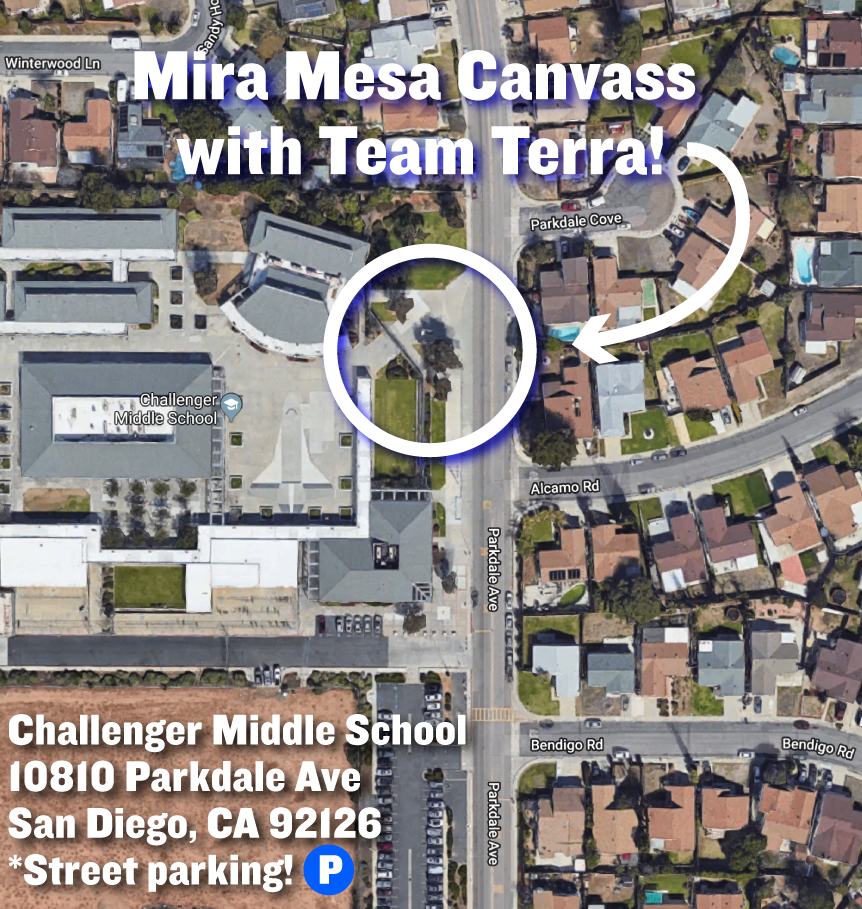 Join us as we talk to our neighbors in Mira Mesa! Terra is coming to their neighborhood on October 20th and wants to hear from them! This is such an easy way to engage voters because we're basically just inviting our neighbors to join a party, share their thoughts, and hear from Team Terra about our vision to transform San Diego County. Help us invite as many of our neighbors as possible to join the movement and #FlipThe3rd