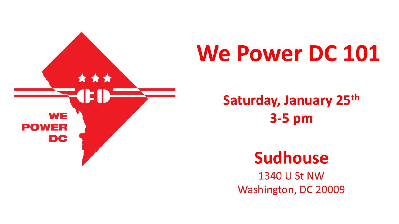 Join We Power DC at Sudhouse for our first event of the year: We Power DC 101! This is the perfect event for anyone who is interested in learning about our campaign, or just wants to know more about the injustices of Pepco, and learn about the public power alternative.