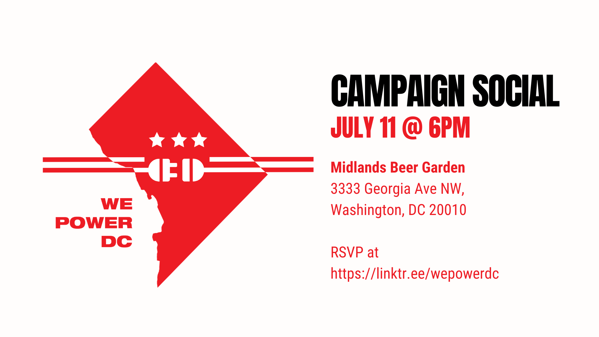 Annoyed at Pepco's skyrocketing electricity bills this summer? Wondering how Metro DC DSA is building a green new deal in DC? Want to meet fellow socialists fighting climate change? Join We Power DC for our next campaign social on Thursday, July 11 at 6pm at Midlands Beer Garden (3333 Georgia Ave NW, Washington, DC 20010).