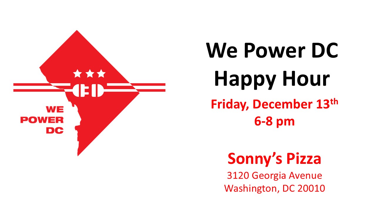 Join We Power DC for our final happy hour of the year on Friday, December 13th at 6:00 pm at Sonny's!