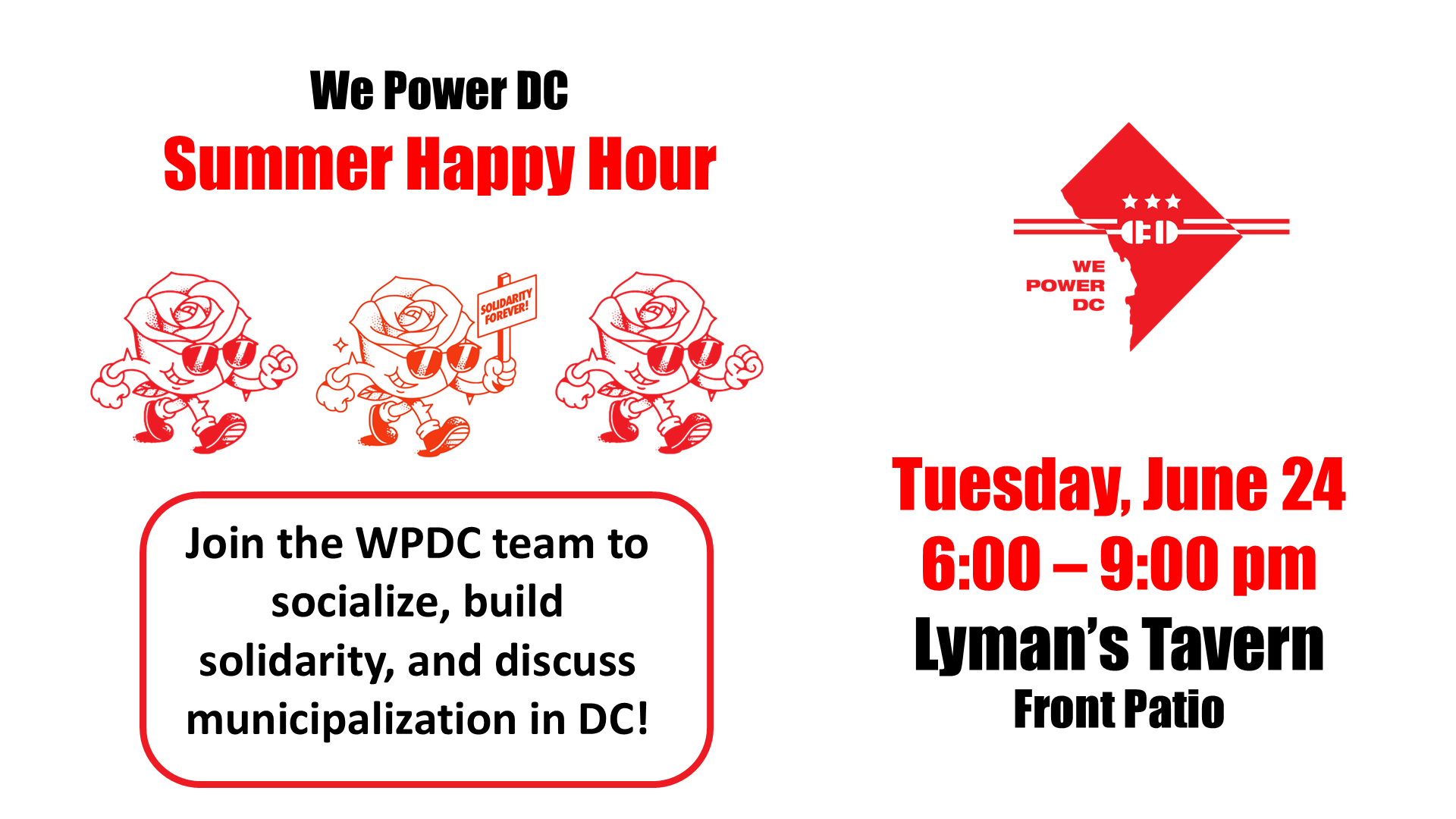 Join We Power DC organizers to chat about the wonders of public power over drinks! (You're allowed to talk about other things as well, of course. But mostly public power).