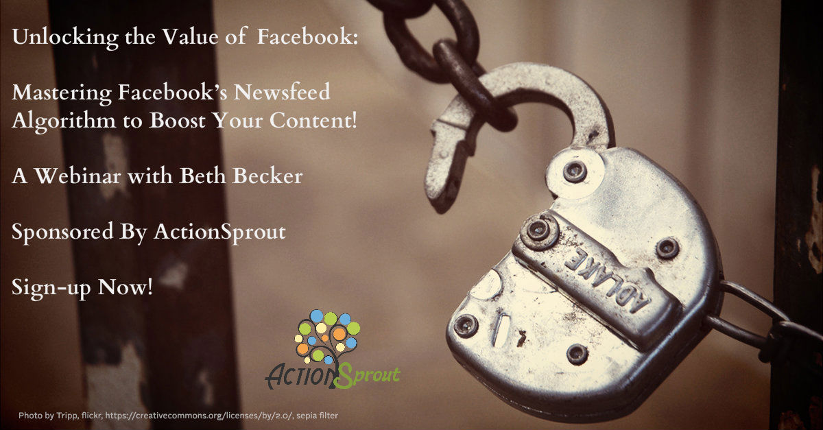 At ActionSprout, we get asked all the time about how to make Facebook really work for nonprofits. So we’re going to try something new for 2015 and sponsor our very first public web series by the award-winning social media strategist Beth Becker on just that topic!