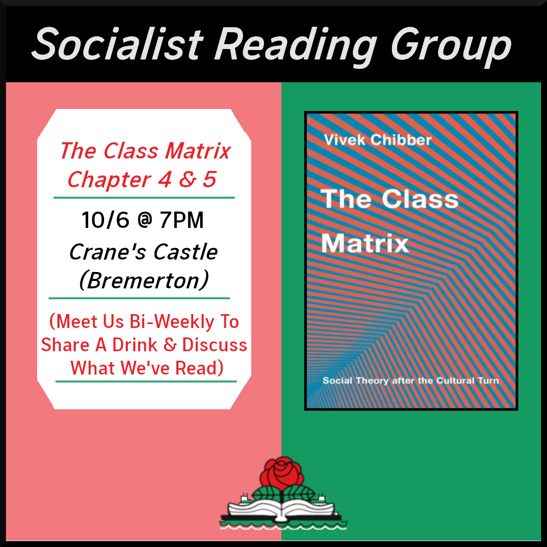 Join West-Sound DSA for our bi-weekly reading group! May it be critiques of an article or simply a time to talk to like-minded individuals, we would love to see anyone and everyone there! We meet at Crane's Castle every other Monday at 7 PM--Email us for the readings!