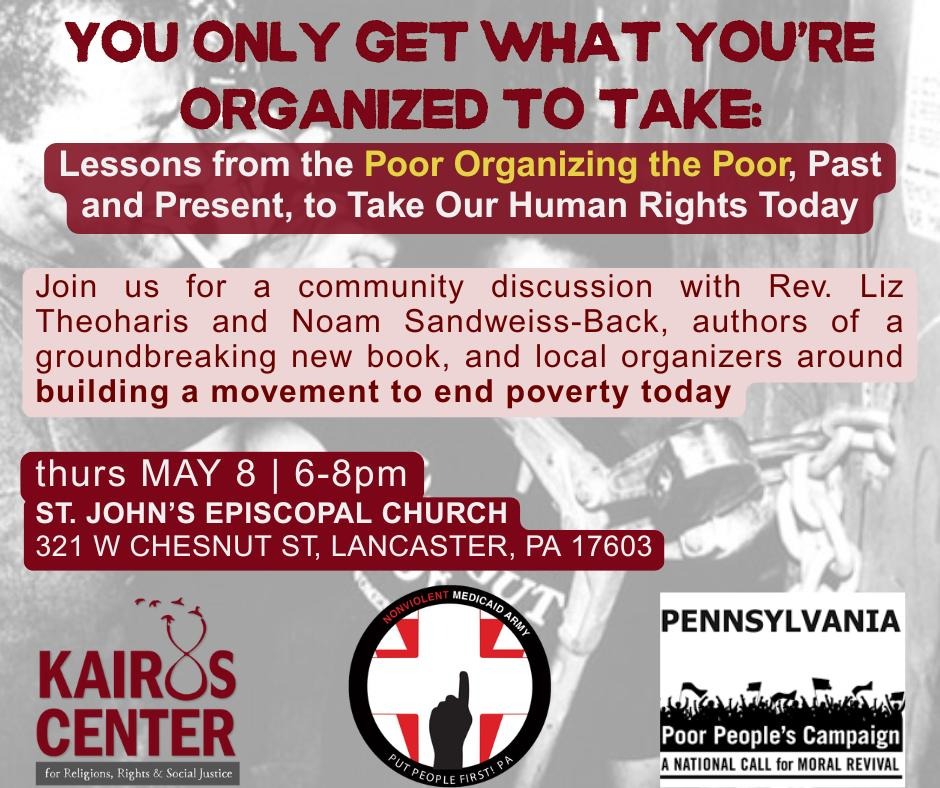 Dr. Reverend Liz Theoharis and Noam Sandweiss-Back from the Kairos Center for Religions, Rights, and Social Justice and authors of the just released book “You Only Get What You're Organized to Take” are coming to Pennsylvania for book tour stops that we are utilizing as an organizing opportunity!