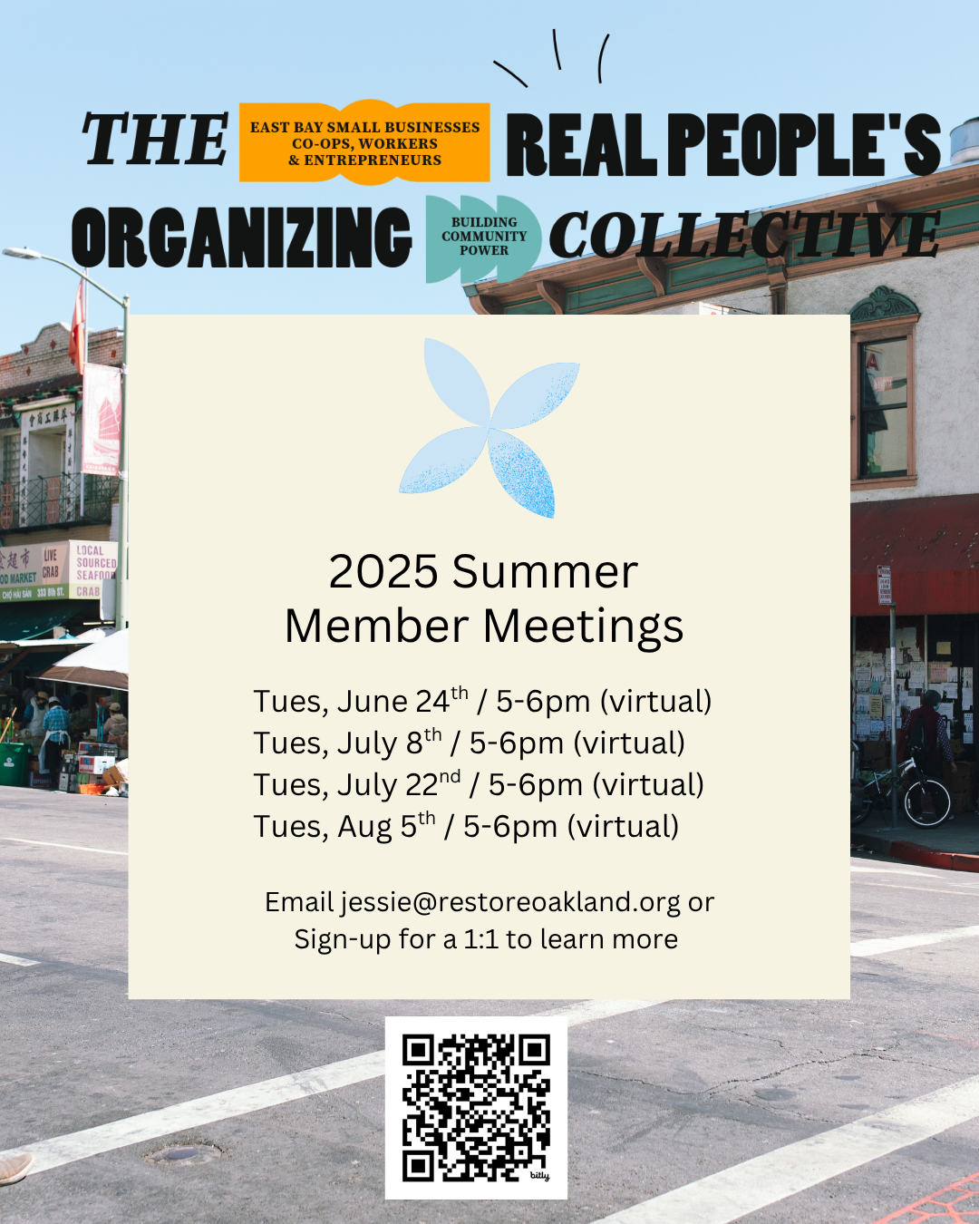 Our approach to building power has multiple dimensions. This is because we know Oakland’s BIPOC businesses, worker-owners and creatives contain multitudes - our histories, experiences, and cultural differences impact how we relate to power, ownership and wealth. With this understanding, we are actively creating the space to learn, unlearn and experiment towards alternative solutions that meet our collective needs.