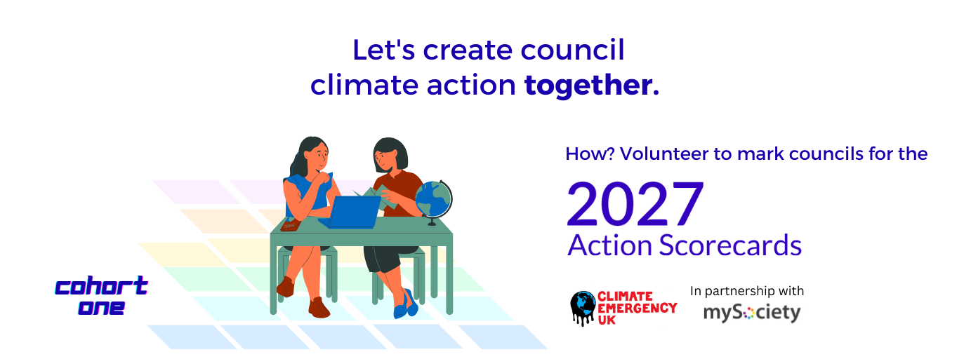 - Scorecards Assessor: This type of volunteering is for those will be marking councils climate action but cannot commit to the Policy Programme. You will still assess councils but at your own pace. Ideally, the Assessor position would complete 20 hours of volunteering over a 4-week period.