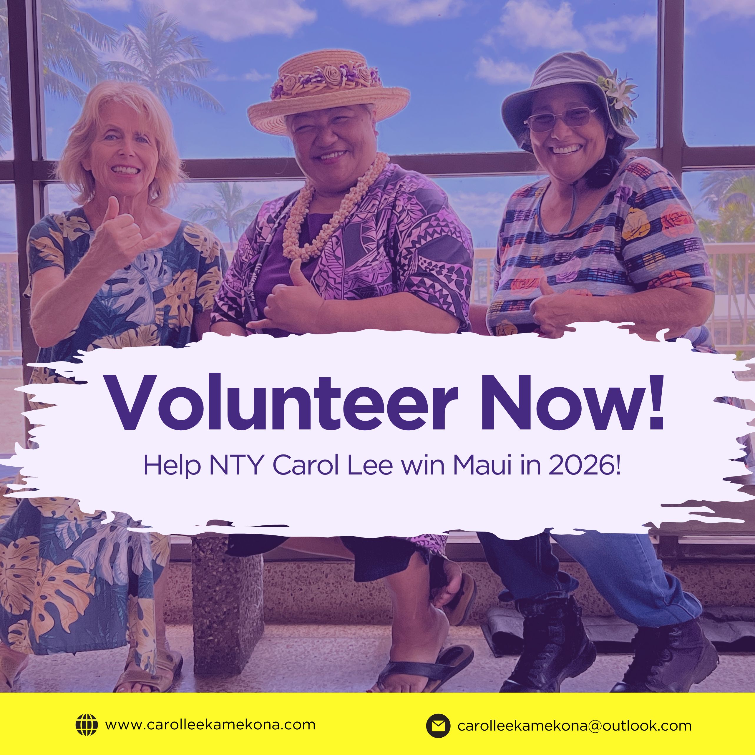 With your help, NTY Carol Lee's progressive values will bring the leadership we need to Maui County Council. Please, sign-up today and help NTY Carol Lee organize voters in her campaign.