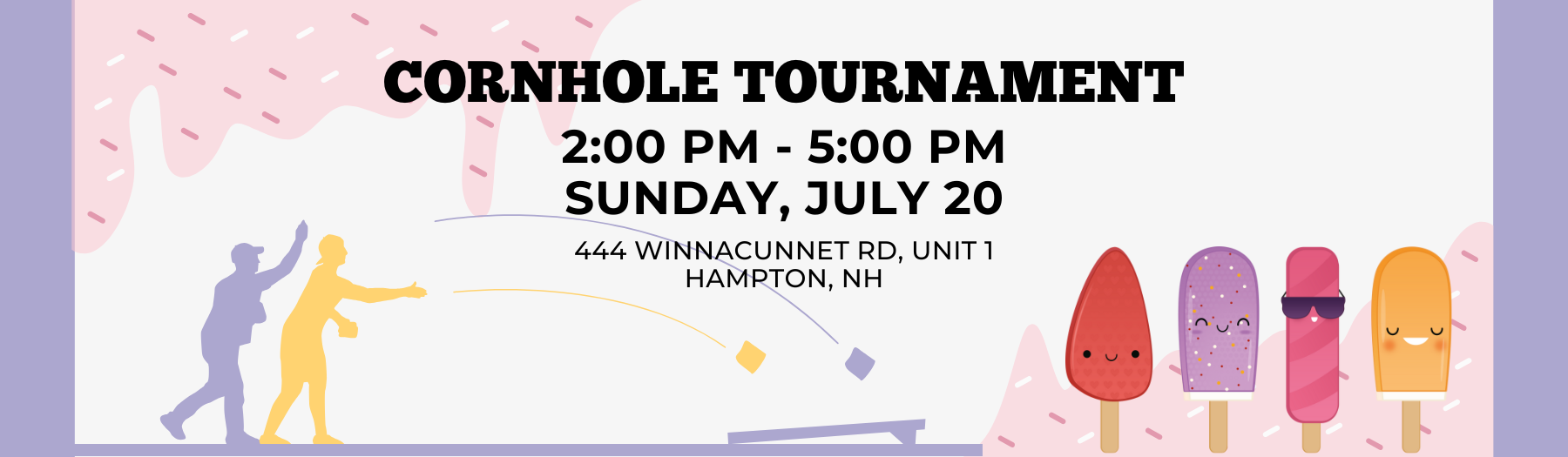 Join us for ice cream and a little friendly cornhole competition on Sunday, July 20, starting at 2 pm.