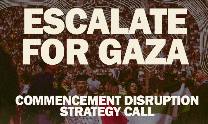 Since the call for young people to participate in the Popular University for Gaza, students across the globe have taken brave and courageous action on their campuses. Everything we do is for Gaza and the liberation of Palestine, our north star. Israel is plotting a ground invasion of Rafah at any moment. Our universities are invested in the systems of imperialism that pay for Israel’s genocide, and political elites are committed to funneling money into weapons sales for the Zionist military. Now, it’s time to escalate.