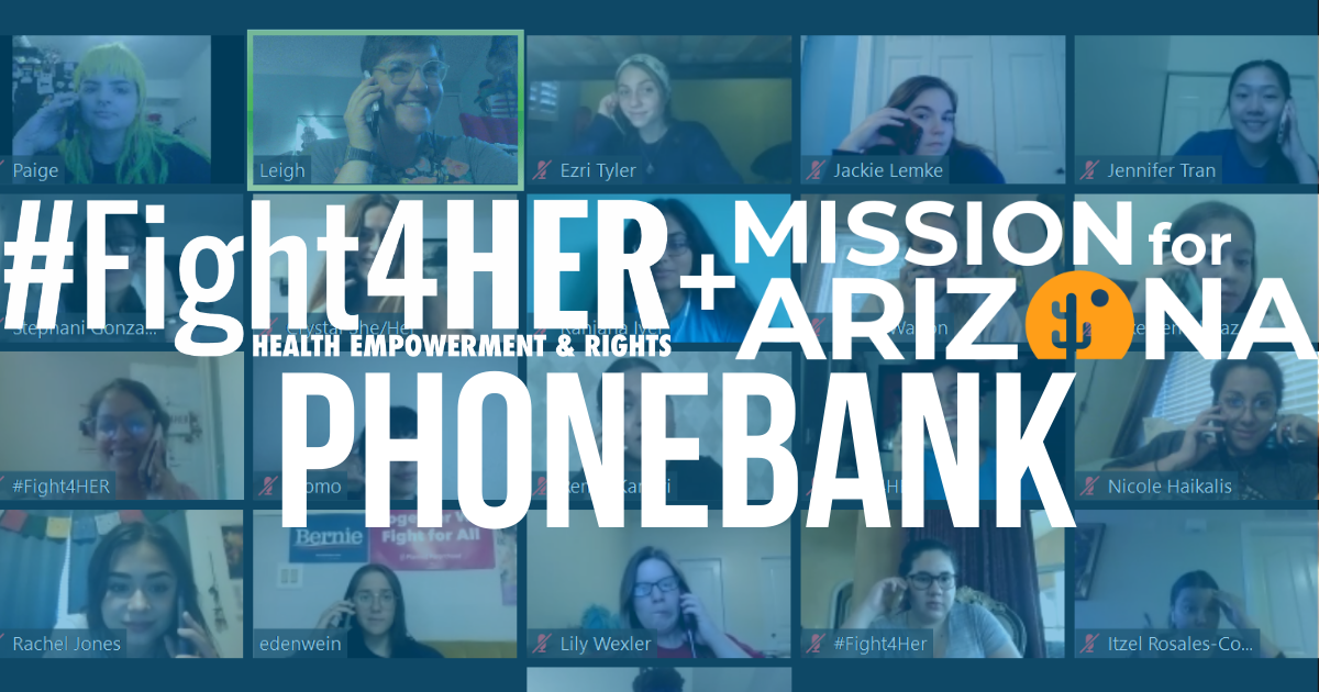 Join us for a #Fight4HER phonebank with Mission for Arizona! This is going to be a historic election year and it is up to us to elect #Fight4HER candidates up and down the ballot who are going to fight for global reproductive freedom in Congress.