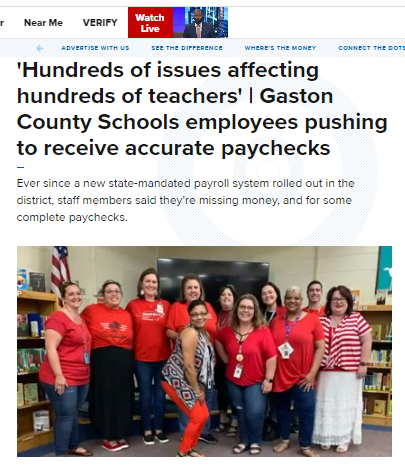 Ever since implementing the new payroll system mandated by the NC General Assembly, the Gaston school district has experienced problem after problem. The system is so bad, some educators haven't been accurately paid in months. According to state law passed by the NC General Assembly this problematic system will soon be required in every school district. Please join us in demanding that NC State Treasurer Dale Folwell, NCDPI School Business Systems Modernization (SBSM) Program Director Barry Pace, State Legislators, and the Gaston County Superintendent W. Jeffrey Booker take immediate action to ensure educators are paid all past and current wages, including bonuses, supplements and mistaken deductions, and that the broken system that they are requiring is either immediately repaired or no longer mandated by law.