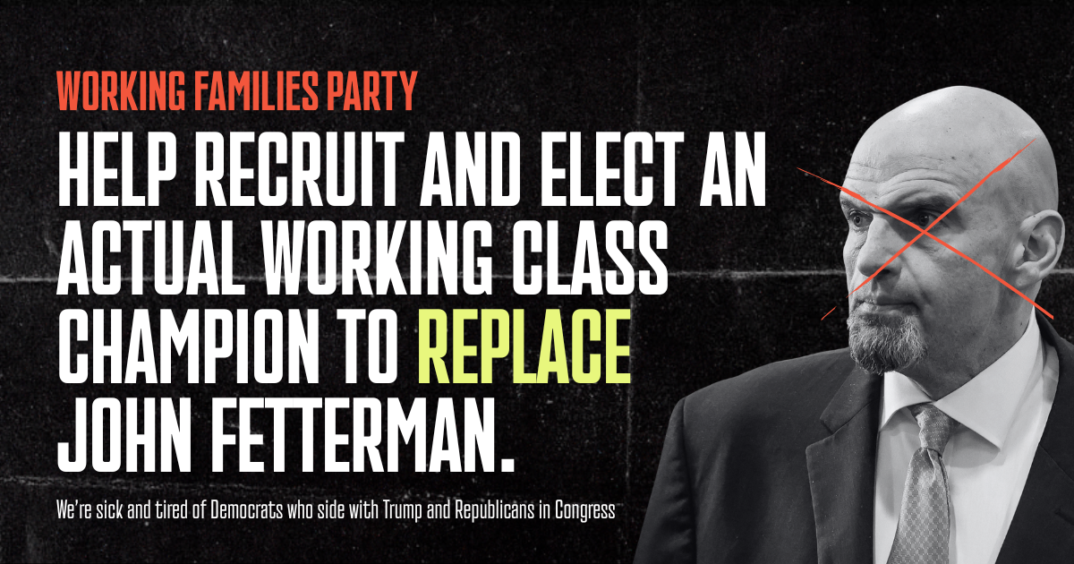 We deserve real working class leadership in the U.S. Senate, not a Trump-enabling corporate Democrat. Senator Fetterman has turned his back on us, and that’s why the Pennsylvania Working Families Party is committed to recruiting and supporting a primary challenge to him in 2028.