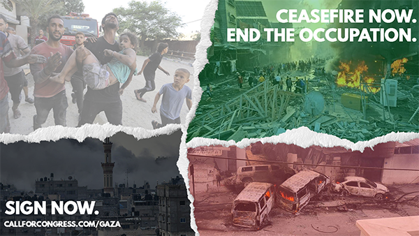 And while support for a ceasefire – initiated by Congresswomen Rashida Tlaib and Cori Bush – is growing in Congress, there is no movement among Democratic leadership in the White House or Congress to end this violence or suspend our government’s support for it.