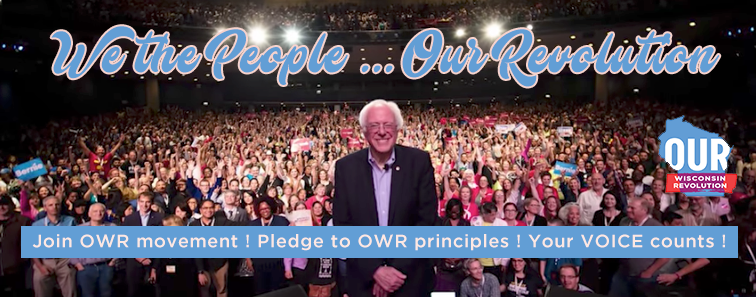 Our Wisconsin Revolution is independent, statewide, membership-driven, popular-democratic organization that seeks to take government back from corporate control, and make it truly of, by, and for the people.