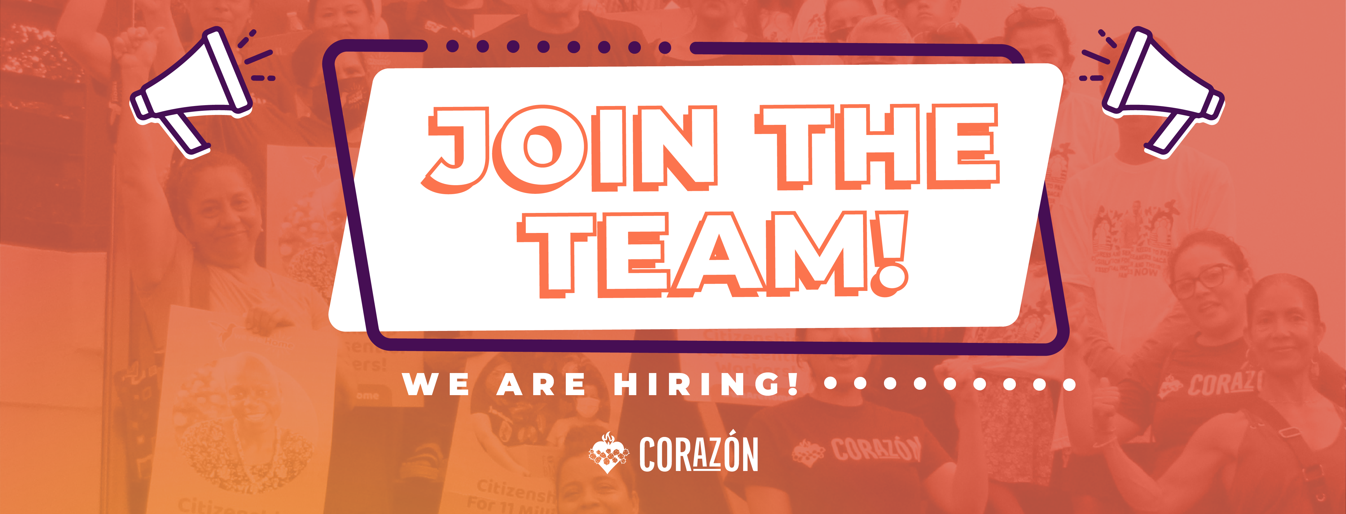 We are excited and appreciate your interest in joining the Corazon team, please take a moment to fill and submit the information on this page and to finalize your application please send an introductory email and resume to info@corazonaz.org with the subject line of the position you are applying for. (Example: “Economic Dignity Organizer”, “Immigration Organizer”, or “Operations Coordinator”)