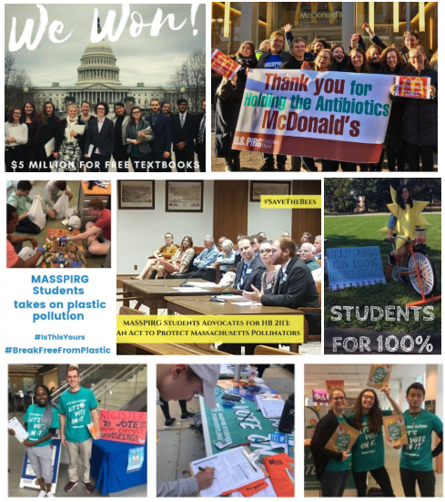 About us: MASSPIRG is a statewide, student-directed, non-partisan, & non-profit organization. For over 45 years, students on college campuses across MA have worked alongside professional organizers and advocates to create a more meaningful future. We believe that college students don’t need to wait until graduation to make an impact – and that’s why we mobilize students to get involved by running grassroots campaigns that make concrete social change. We work on a variety of issues such as protecting the environment and public health, reducing the cost of higher education, increasing youth participation in elections, and alleviating poverty. Learn more about MASSPIRG here.