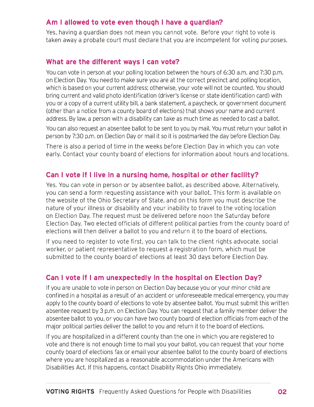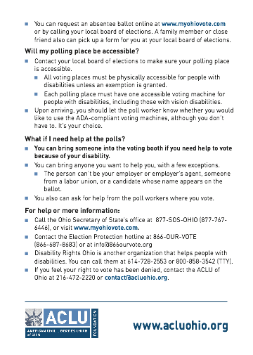 8. Disability Rights Ohio - Voting with a Disability Fact Sheet (Front and back)