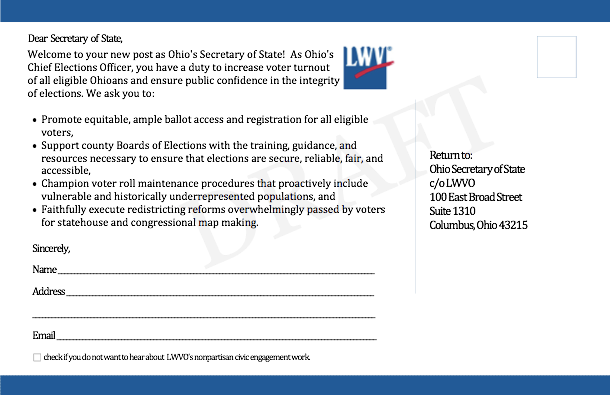 10. League of Women Voters - Secretary of State Welcome Postcard