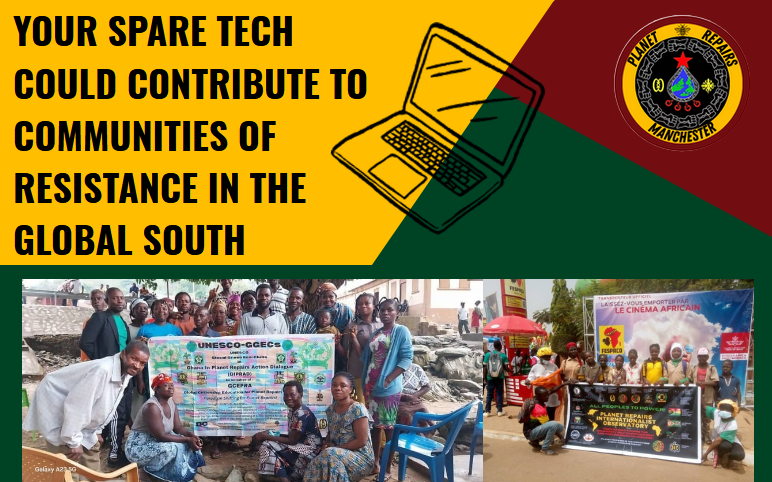 We are collecting spare phones, laptops, hard drives, tablets and tech equipment to support community regeneration, reparations and liberation projects in the Majority World/Global South.