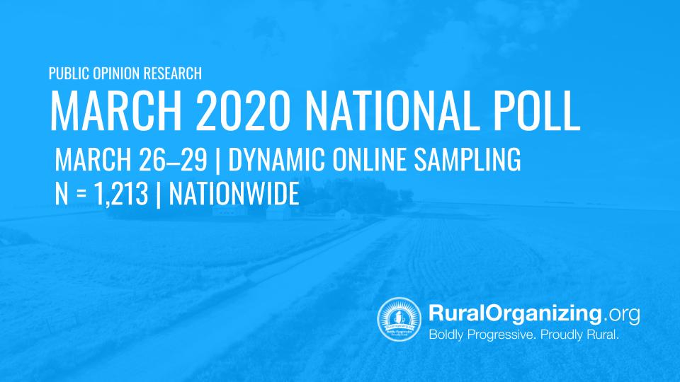 Between March 26–29, 2020, RuralOrganizing.org commissioned a nationwide poll to gauge public opinion on issues of critical importance to all voters. In keeping with our mission and in order to provide a comprehensive analysis of rural voters, the research included an oversample of voters living in counties designated as rural, according to the USDA rural urban continuum codes. In our analysis, we refer to these voters as “non-metro.”
