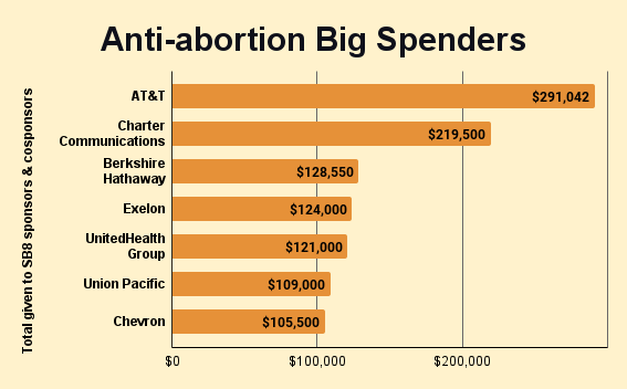 AT&T, a company that pretends to pride itself on workplace diversity and inclusion, was the highest contributor to anti-abortion lawmakers.