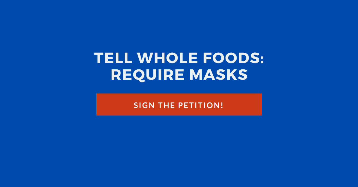 Add your name to our petition now to demand that Whole Foods do its part to stop the spread of COVID-19 by requiring all customers to wear masks in their stores.