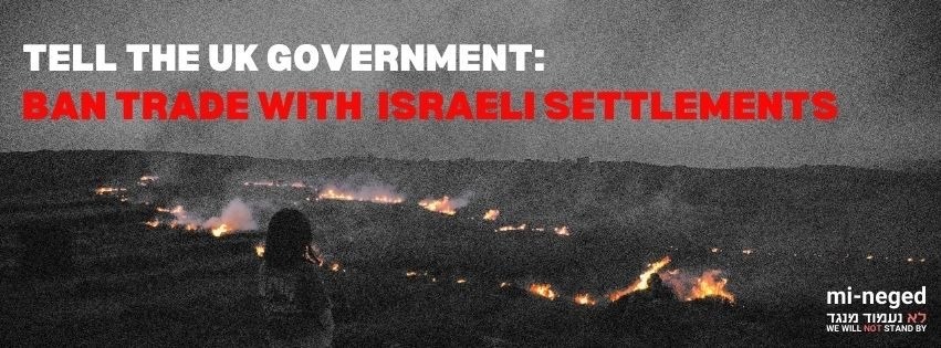 We, UK-based Israeli citizens, call on the UK to ban all trade in goods and services with the Israeli settlements in the illegally Occupied Palestinian Territories (OPT), including East Jerusalem. Such a ban, while far from sufficient on its own, would be an impactful rejection of Israel’s complicity in the settlers’ extreme violence, and a positive step towards upholding international law and recognising Palestine sovereignty.