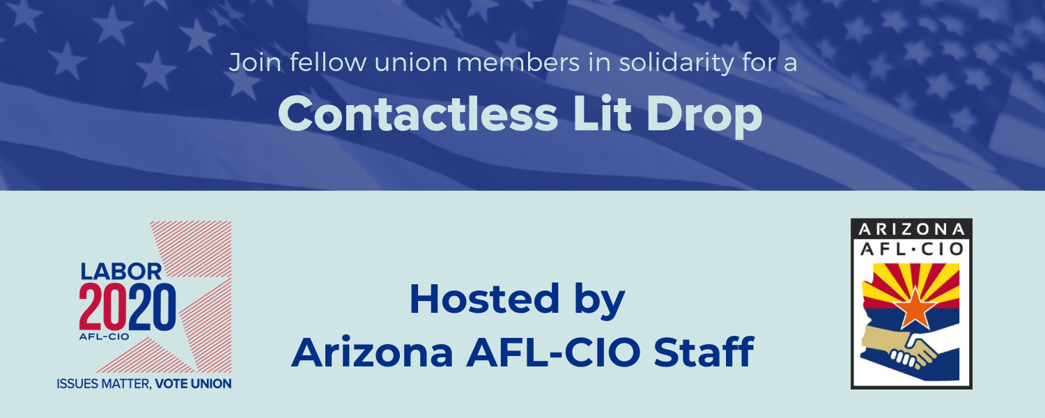 The Arizona AFL-CIO, Maricopa Area Labor Federation and Pima Area Labor Federation will be hosting an Arizona Labor 2020's Lit Drop on Saturday, October 17th! In an effort to maintain the health and safety of our campaign staff and volunteers, we will require that you view our MANDATORY Zoom Training Recording in which we discuss our health and safety guidelines.
