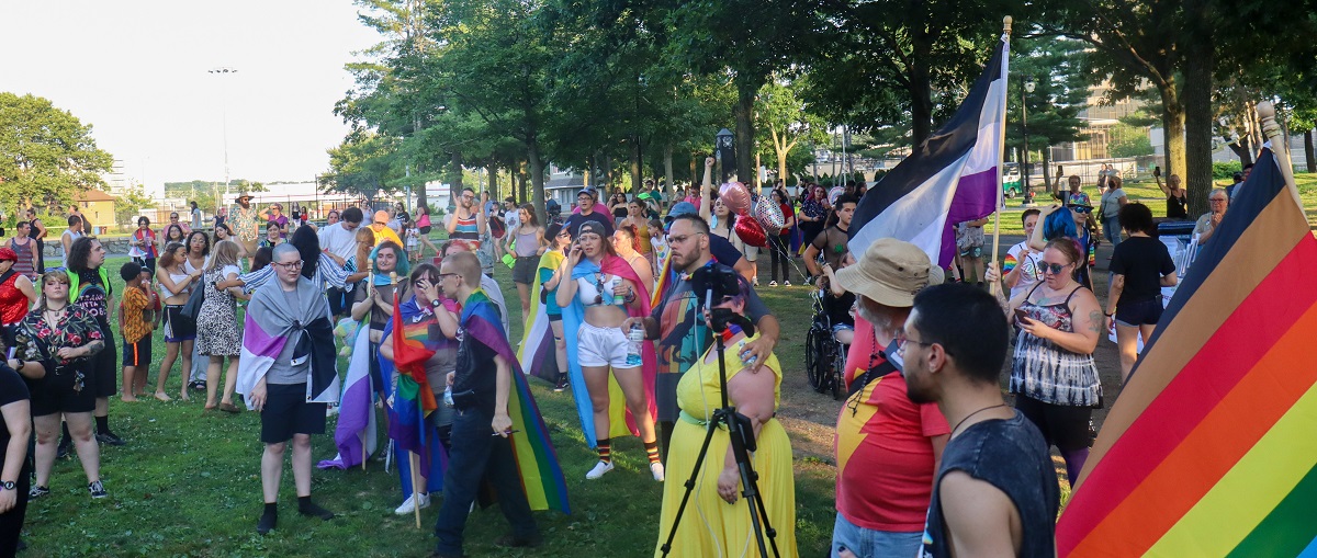 Our team has already started to discuss Woonsocket Pride 2022! The event in 2021 was a beautiful, powerful, historic day: hundreds of people gathered to march through the streets of Woonsocket and celebrate in WWII Park.