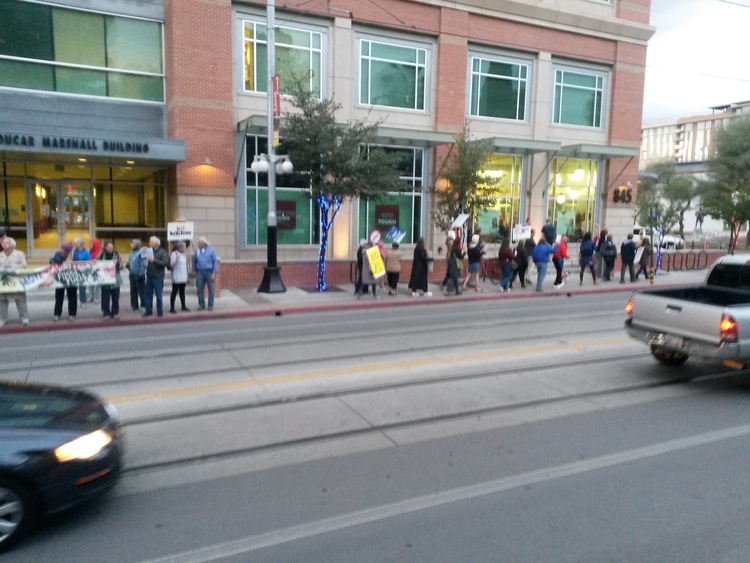 350 Tucson is a loosely organized group of local climate activists who organize events in cooperation with a broad coalition of other groups including Tucson Climate Action Network, Sierra Club's Beyond Coal campaign, Physicians for Social Responsibility, Occupy Tucson, Tucson Citizens Climate Lobby chapter, etc.