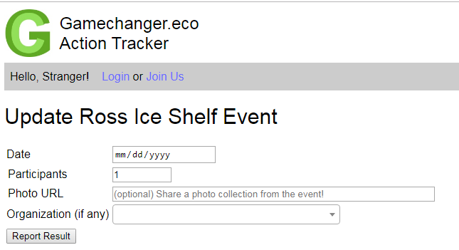 b. On the Gamechanger.eco reporting tab, like Ross Ice Sheet shown below, Press 'Add Date'