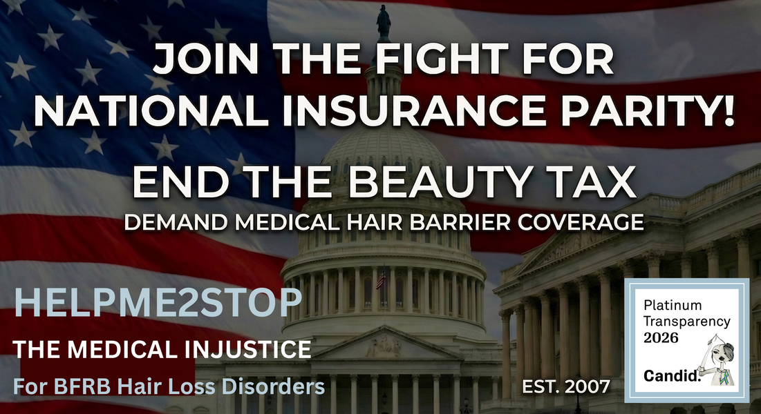 Our Roots: Founded by HairNurseCharlene, a clinical specialist since 2002 and a dedicated Trichotillomania advocate since 2004, HelpMe2Stop the Medical Injustice is built on nearly a quarter-century of frontline expertise. We are a progressive national movement dedicated to dismantling the systemic biases that prevent patients from accessing essential, life-changing medical care.