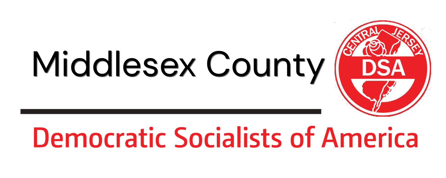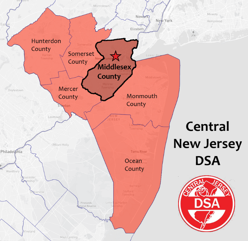 Welcome to the Middlesex County Branch of the Central New Jersey Chapter of the Democratic Socialists of America. Get plugged into one of the many campaigns, socials, and actions happening here, including standing up for our unhoused and immigrant neighbors, fighting for LGBTQ+ protections, demanding an end to imperial wars, organizing tenant unions and building in the labor movement, and winning elections and class struggle campaigns across Middlesex County. As the locale with the largest amount of active members of our chapter, we're building a new people-powered machine in Middlesex County, one that's democratic, and sees us as part of a nationwide movement to win a society where the working class can flourish.