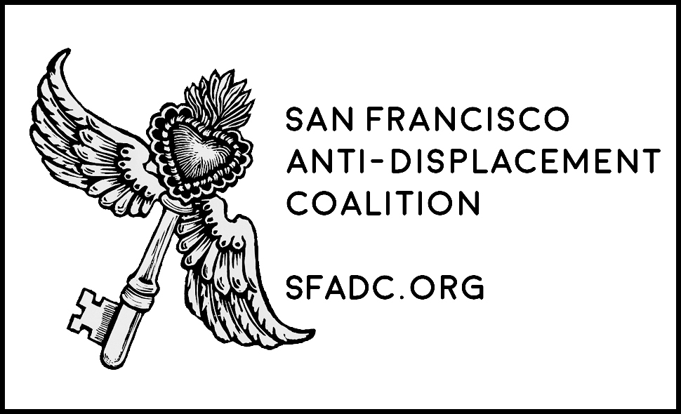 The San Francisco Anti Displacement Coalition is a group of tenant organizations and allies who organize against the soaring evictions and rent increases in our city, which have resulted in the displacement of thousands of San Franciscans.