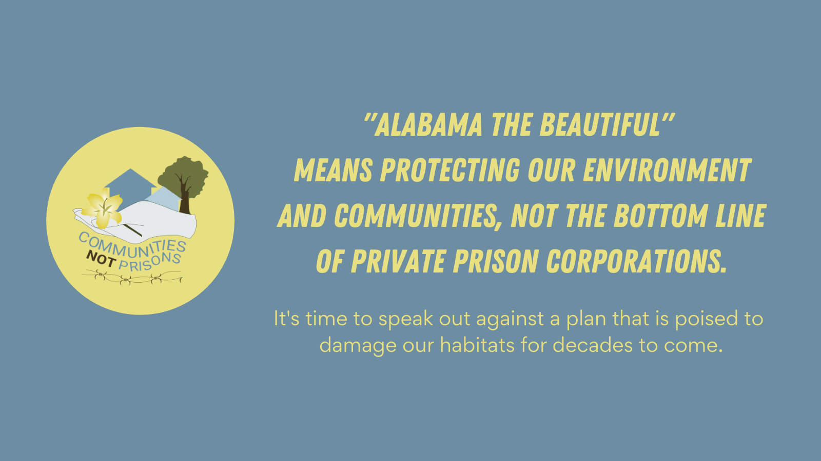 The prisons would be built within small, rural communities in Bibb, Elmore, and Escambia counties, and plans to build these massive new private prisons are plowing forward without any assessment of the environmental impact they will have on critical water supplies, ecosystems and watersheds in Alabama. Local residents and environmental experts are ringing the alarms as construction looms for prisons that would nearly double the population of these communities without any plan for basic things like drinking water and waste treatment. In addition to the steep human cost of this expansion of mass incarceration in Alabama, we are facing a thoughtless environmental disaster in the making.