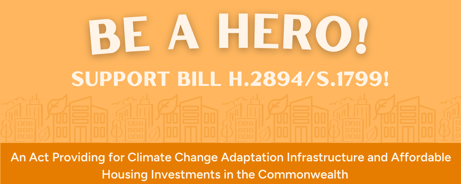 The Housing & Environment Revenue Opportunities (HERO) bill, formally known as H.2894 and S.1799: An Act providing for climate change adaptation infrastructure and affordable housing investments in the Commonwealth, is an equitable response to the challenges that we are currently facing from the impacts of climate change and dire need for more affordable housing. This act would double the deeds excise fee in Massachusetts from $4.56 per $1,000 to $9.12 per $1,000 on property sold. 50% of the increased fee would be allocated towards climate mitigation and adaptation steps based on the Massachusetts Clean Energy Climate Plan, and 50% would be allocated towards the Affordable Housing Trust Fund and Housing Preservation Stabilization Fund to fund more affordable housing stabilization, preservation, and building.