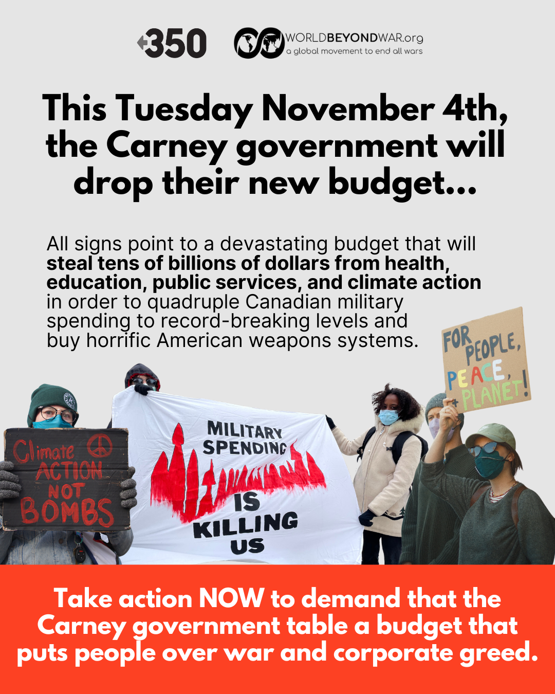 It is expected to be a devastating budget that will steal tens of billions of dollars from health, education, public services, and climate action and pour it into buying American weapons systems and quadrupling Canadian military spending.