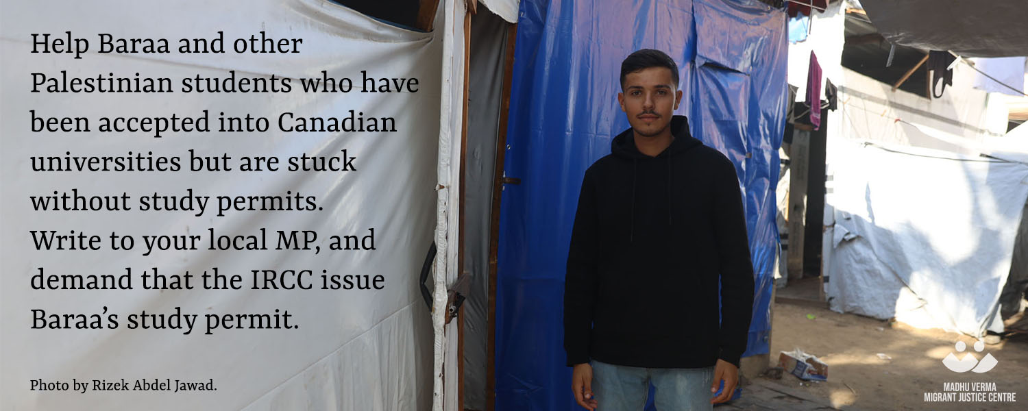 Baraa, 23, was accepted into the Master of Computer Science program at the University of New Brunswick. He was supposed to begin his studies in September, but instead he remains in a displacement camp in the bombed-out city of Khan Younis in Gaza. Canada won’t issue him a study permit until he submits biometrics, but to do so, he must leave Gaza, which is virtually impossible without already holding a travel visa. Read more about Baraa's story here: https://nbmediacoop.org/2025/11/26/student-accepted-into-unb-grad-program-stranded-in-gaza-awaiting-canadian-study-permit-video/