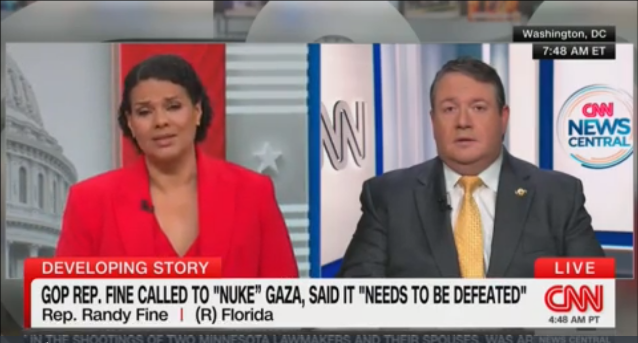 But then CNN anchor Sara Sidner asked if Rep. Fine was worried about nuclear bombs or fallout killing innocents in Gaza. The congressman simply stated, “I think war is a messy thing, and I think that when you defeat evil, you have to do what is necessary to do it.”