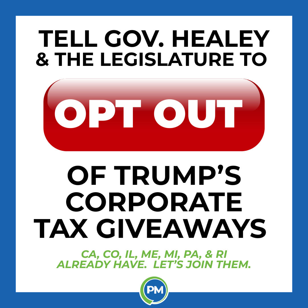 Trump’s corporate tax cuts are going to cost Massachusetts nearly half a billion dollars this year alone — on top of billions of dollars in cuts to Medicaid, SNAP, and other federal programs we rely on.