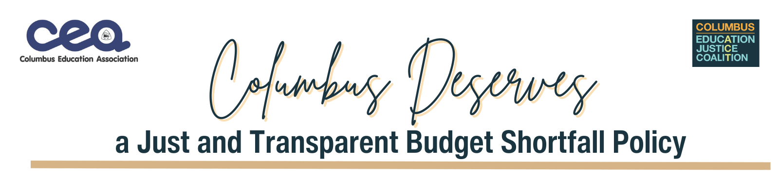 The Columbus Education Justice Coalition (CEJC) has submitted a proposed Budget Shortfall Policy to the Board of Education that ensures: