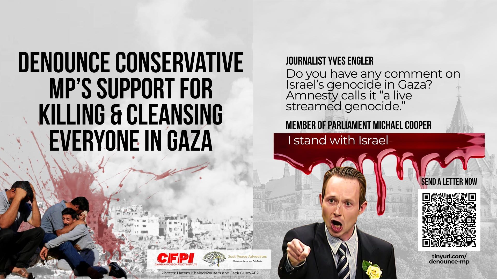 Denounce Conservative MP’s support for killing & cleansing everyone in Gaza