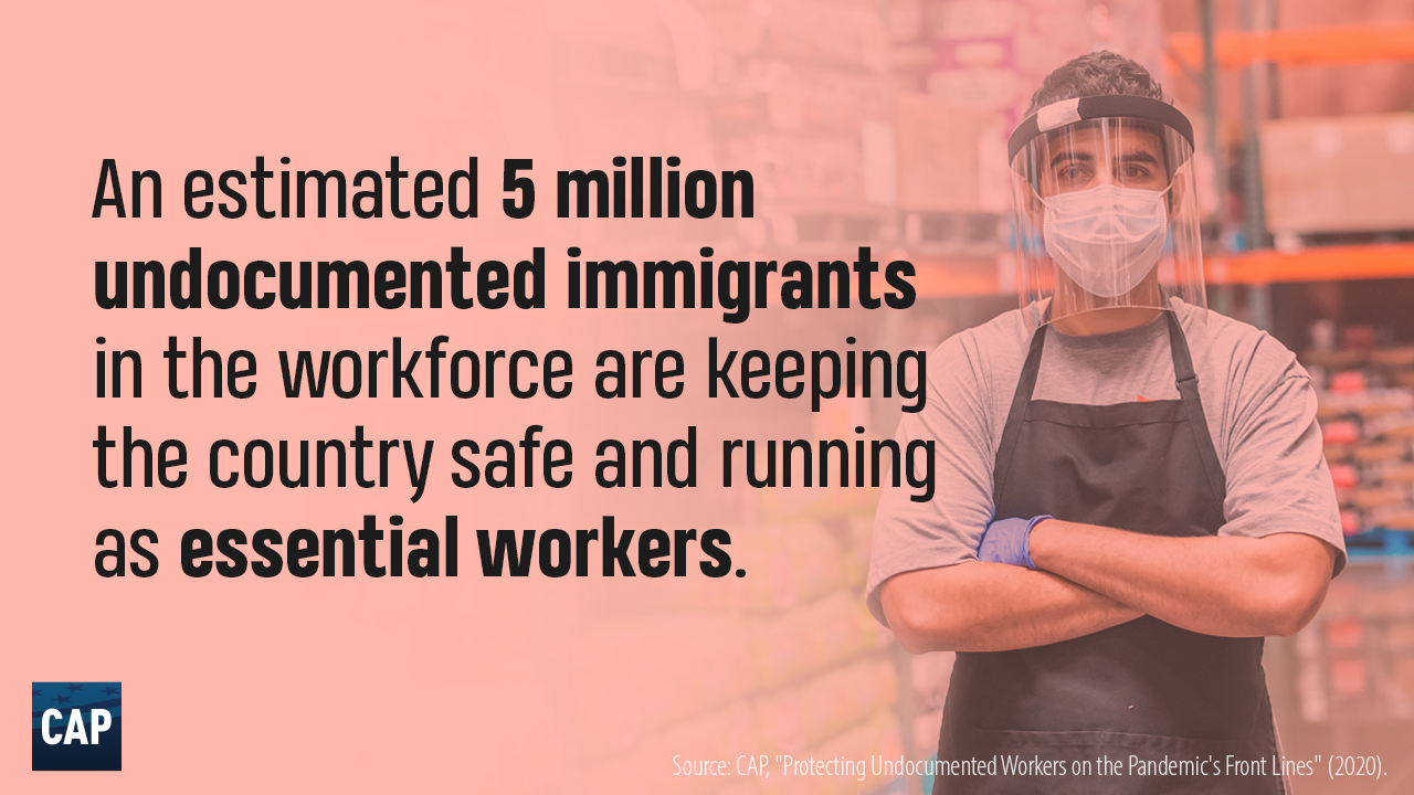 The Center for American Progress estimates that five million undocumented immigrants, including 202, 5000 DACA recipients and 131, 000 TPS holders, are on the frontlines of the #COVID19 pandemic, serving in jobs deemed “essential” to the proper functioning of the nation and our economy. It's time to include a pathway to citizenship for essential workers & families, #Dreamers, and #TPS holders in the #COVID19 bill. #WeAreHome
