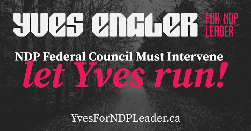 One of the claims used to justify Yves Engler’s exclusion from the race relied on a social media post from an impersonation account. Rather than addressing the sloppy and undemocratic vetting decision, the party’s National Director has circulated an internal email to Federal Councillors minimizing member opposition to the decision. Please email the Federal Council to demand they investigate the decision and stand up for members’ right to decide who leads the NDP.