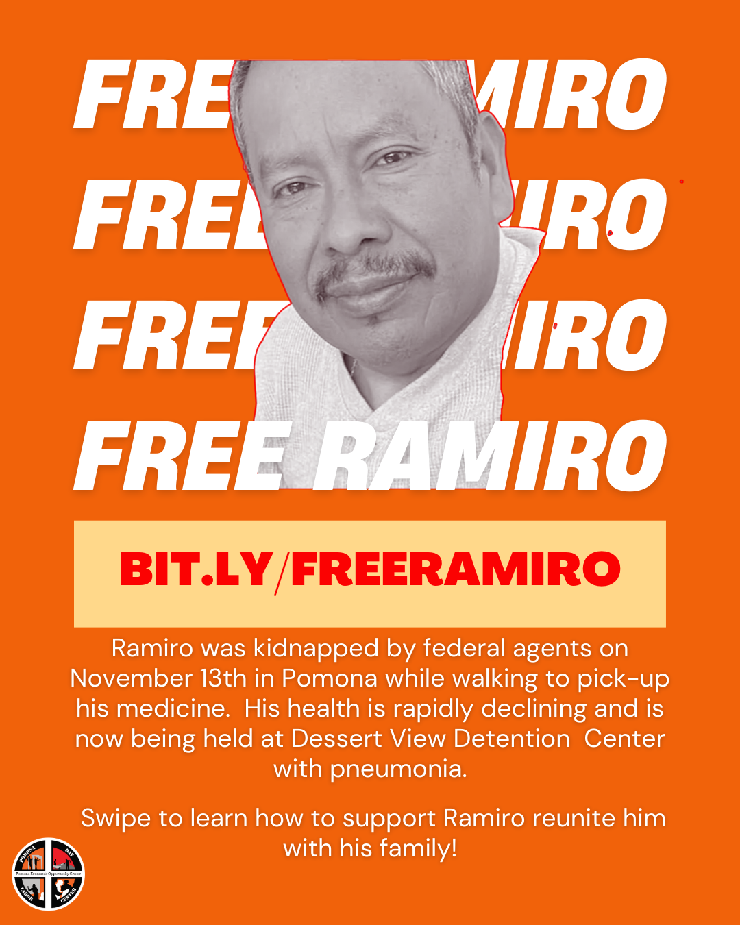 His fragile health is rapidly declining, and he is now being held at the Desert View Detention Center. We are calling on ICE to immediately release Ramiro so he can go back to his medical treatment plan.