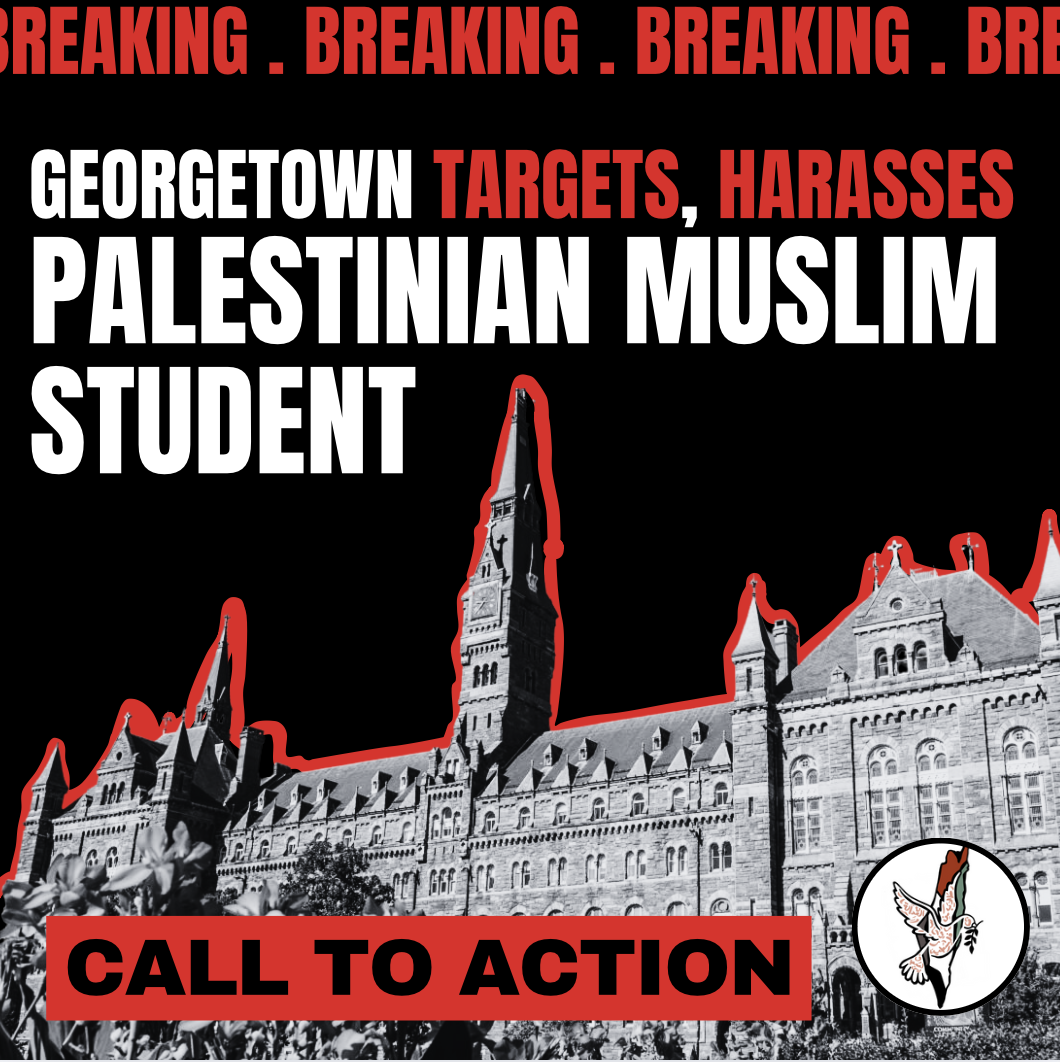 CALL TO ACTION —FLOOD ADMIN INBOXES, DEMAND THAT GEORGETOWN UNIVERSITY DROP THE CHARGES AGAINST A PALESTINIAN MUSLIM WOMAN